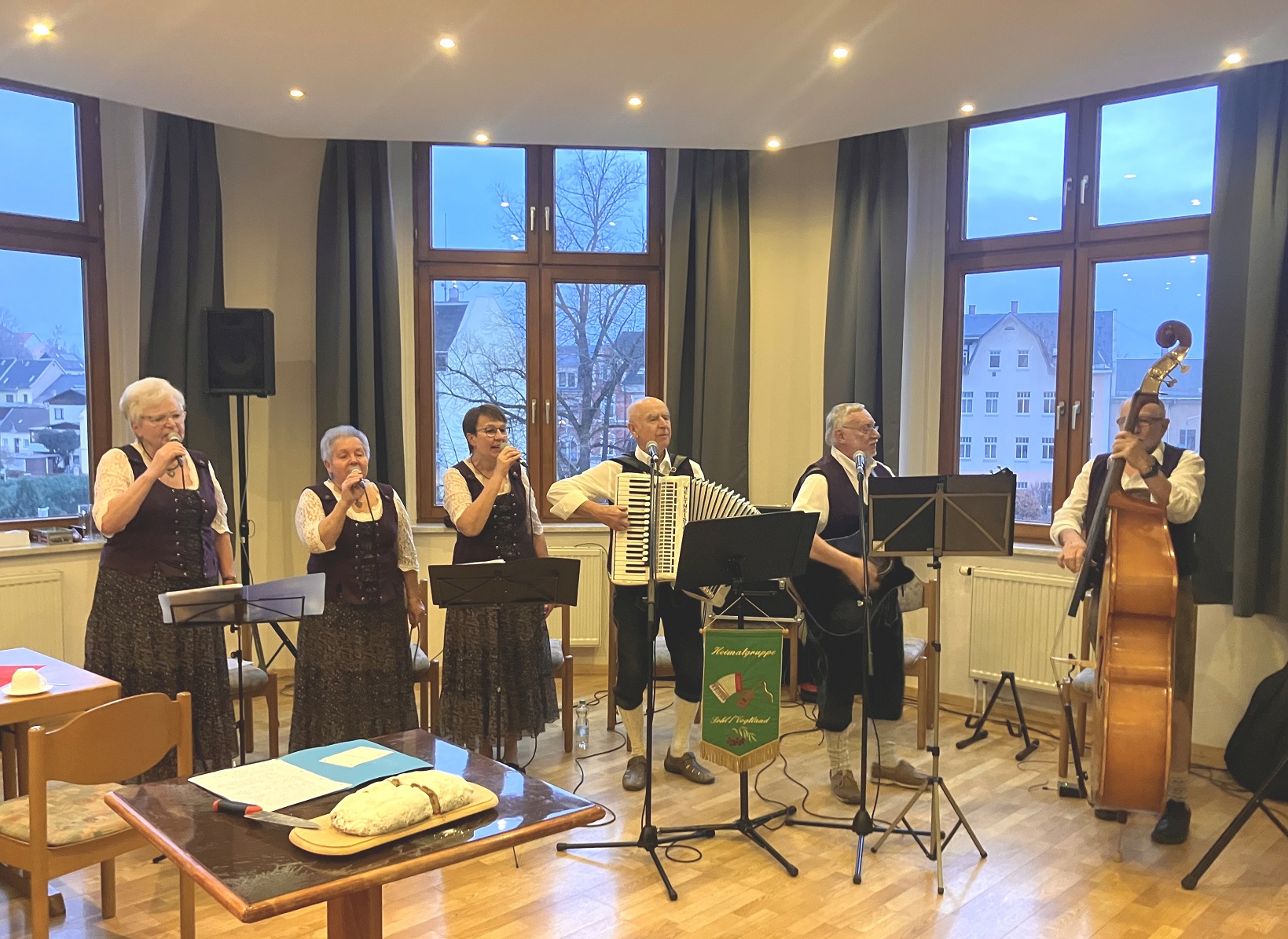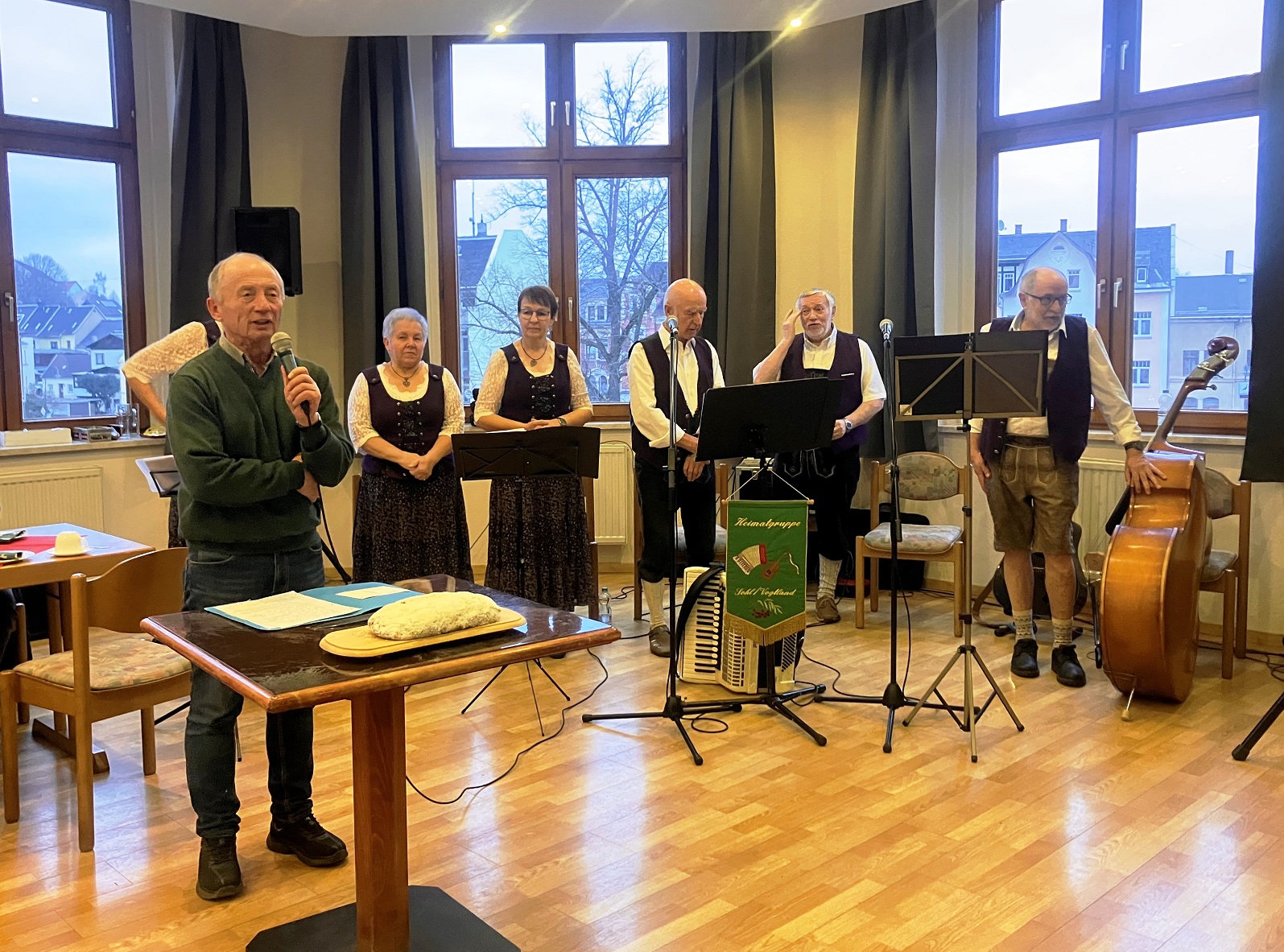 Am Dienstag vor dem Ersten Advent lud der Kulturbund Lengenfeld zum traditionellen Stollenanschnitt ein in den „Lengenfelder Hof“. Unser Vorsitzender, Dr. Erich Riedel, eröffnete den gemeinsamen Nachmittag mit einem Rückblick auf die vielfältigen Veranstaltungen des zurückliegenden Jahres, vollzog den offiziellen Anschnitt des von der Bäckerei Lenk gesponserten Stollens und überließ sodann die Bühne der Heimatgruppe Sohl/Vogtland, die mit einem abwechslungsreichen Programm die kaffeetrinkenden Gäste unterhielten.